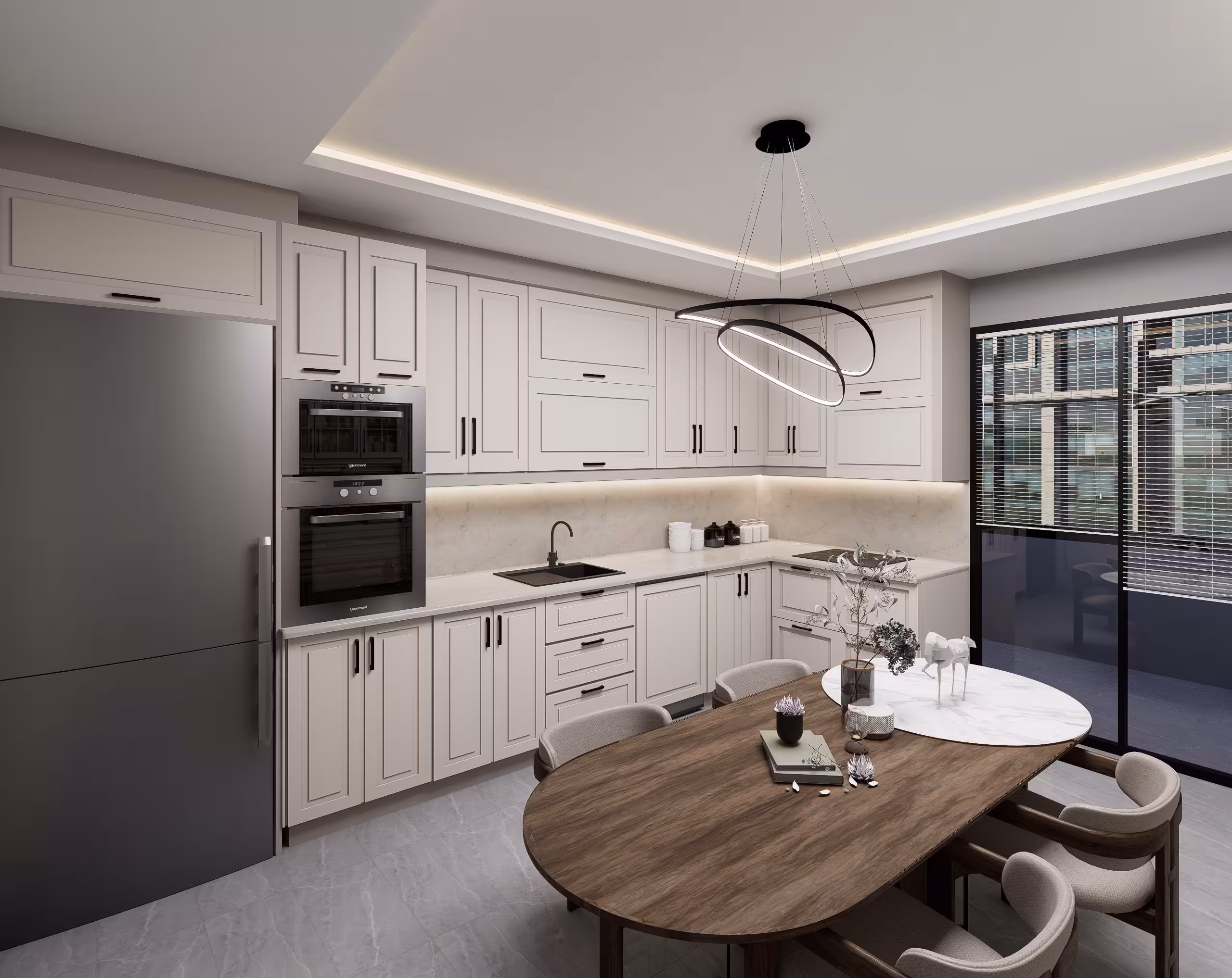 Dik ve yatay kütlelerin dengeli birlikteliğiyle tasarlanan bu konut projesi; modern cephe dili, güçlü oranlar ve sade malzeme kullanımıyla öne çıkıyor. Gün ışığını maksimum alan, ferah ve fonksiyonel yaşam alanları hedefleyen çağdaş bir konut yaklaşımı sunuyor.